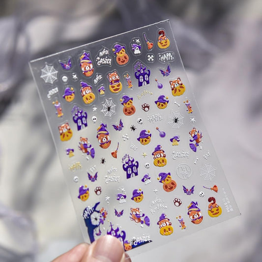 5D Embossed Halloween Nail Stickers 3D Self-Adhesive Magic Hat Pumpkin Nail Supplies Cute Cute Ghost Nail Decals Haunted House Spider Web Nails Designs for Women Holiday DIY Manicure 1 Sheet