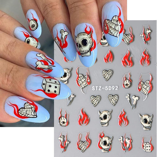 8 Sheets Halloween Nail Stickers for Nail Art 5D Self-Adhesive Gothic Bat Skeleton Spider Nail Decals Black White Claw Nail Design Stickers Halloween Nail Art Supplies for Women DIY Manicure Tip
