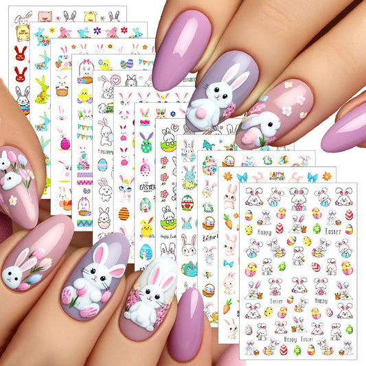 12 Sheets Easter Nail Art Stickers 3D Self-Adhesive Cute Bunny Nail Stickers Colorful Rabbit Eggs Carrot Design Carrot Nail Decals Easter Nail Supplies for Women Girls DIY Nail Art Decorations