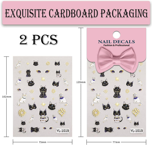 5D Egyptian Cat Nail Art Stickers, Embossed Nail Decals Supplies Self Adhesive Nails Sticker DIY Acrylic Nail Accessories - 2 Sheets