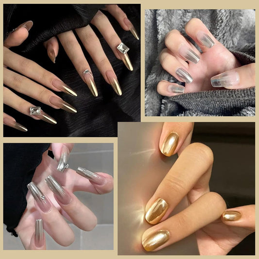 Artdone 2 Jars Chrome Nail Pearl Powder Silver and Gold, Iridescent Aurora Powder Metallic Mirror Effect Pigment Pearlescent Mermaid Pearl Dust Kit, Decoration Acrylic Resin Craft