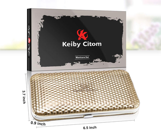 Manicure Set Professional Nail Clippers Kit Pedicure Care Tools- Stainless Steel Women Grooming Kit 12Pcs for Travel or Home (Gold)