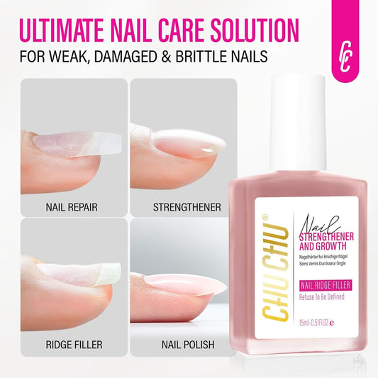 CHUCHU Nail Strengthener Base Coat: Quick Dry Protein Clear Hardener Polish - Repair Ridge Filler for Women Men Beginners Home Salon Gift - 15ML