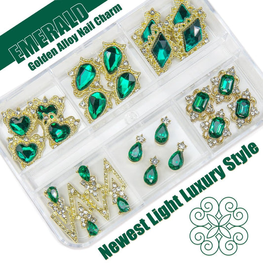 24pcs 6 Styles Emerald Green Nail Charms Big Luxury Nail Rhinestones Heart Gems Crystals Diamonds Jewelry Jewels Stones Nail Art Studs for Arylic Nails DIY Crafts Clothes Shoe Phones Cardmaking