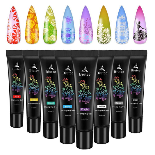 Biutee Nail Stamping Plates Set - 12pcs Templates, 8 Colors, Stamper, Scraper, Storage Bag - Animal & Flower Design Nail Art Plates