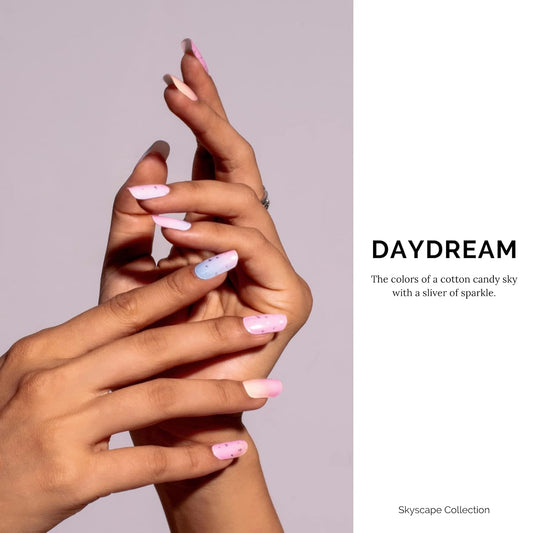 Nailog Semi Cured Gel Nail Strips 34 pcs | Long Lasting Nail Polish Sticker Wraps with Glossy Gel Finish | Daydream