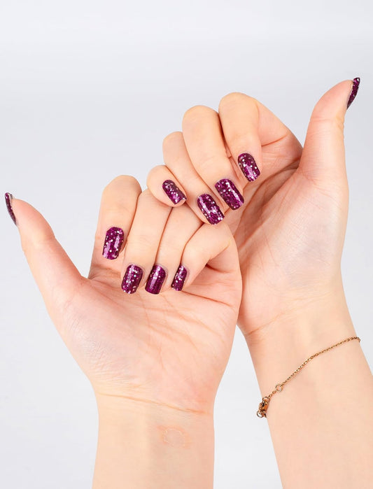 48 Pcs Semi Cured Gel Nail Polish Strips for Women, Self-Adhesive No UV Light Needed Glitter Nail Design Stickers for Nail Art Wraps (Purple)(Purple)