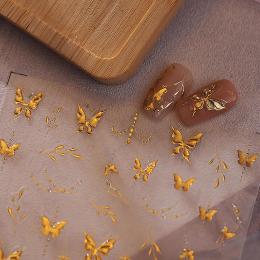 5D Embossed Nail Stickers for Nails Art Butterfly Nail Art Stickers Gold Nails Decals Self Adhesive with Leaf Design Nails Art Decals for Women Manicure Supplies Decorations Accessories