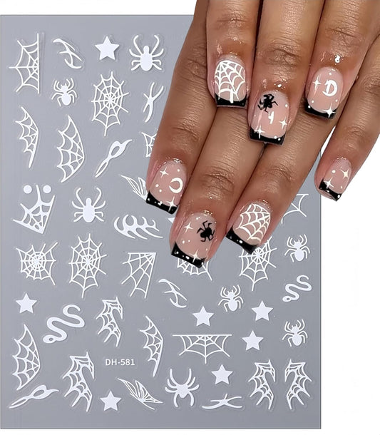 8 Sheets Spider Web Nail Art Stickers 3D Holographic Halloween Spider Snake Nail Decals Golden Silver Black White Design Nail Art Stickers for Women para Uñas DIY Manicure Art Halloween Decoration