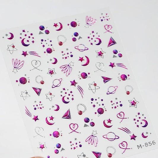 Purple Nail Art Stickers Star Moon Nail Decals 5D Embossed Jelly Nails Stickers Self Adhesive with Design for Women Girls Kid Manicure Charms Supply DIY Decoration Accessories