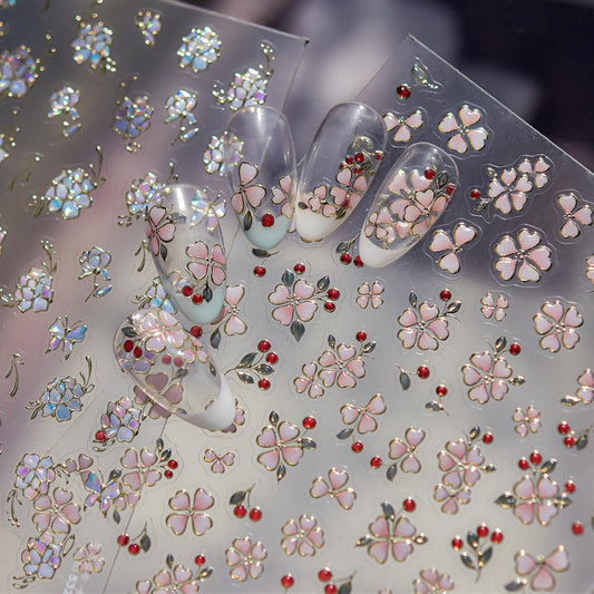 Flower Nail Stickers Pink Nail Art Stickers Jerry Nail Decals with Red Design Floral Nails Art Decals 5D Embossed Self Adhesive Nails Charms for Women Girls Manicure DIY Decoration Accessories