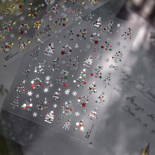 Christmas Nail Stickers Xmas Tree Nail Art Stickers Silver Nail Decals for Nails Art 5D Embossed Self Adhesive Snowflake Nails Art Decals for Women Girls Manicure DIY Decoration Charms Accessories