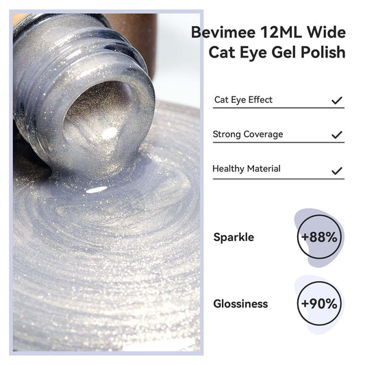 Cat Eye Gel Nail Polish Moonlight Magnetic Nail Polish Silver Glitter Mirror Glass Smoothie Cateye UV Gel Polish Holographic for Nail Art Manicure DIY at Home 1PC 12ML