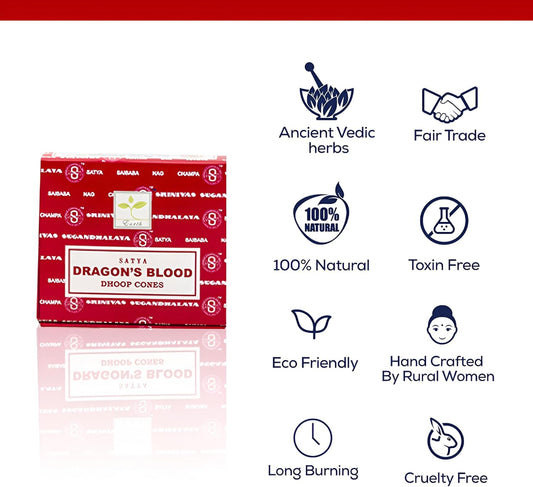 Satya Sai Baba Dragons Blood Original Earth Marked Natural Masala Incense 144 Dhoop Cones in Pack of 12 Boxes | Best for Prayer, Meditation and Relaxation