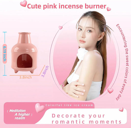 Handmade Pink Ceramic Palo Santo Holder Burner & Sage Holder - Mini Tabletop Chiminea Burner Tray with Ash Catcher, Decorative Incense Holder for Spiritual Meditation & Yoga