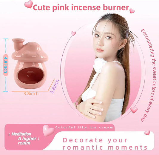 Mushroom Incense Holder, Pink Ceramic Palo Santo Holder Burner & Sage Holder - Mini Tabletop Chiminea Burner Tray with Ash Catcher, Cute Mushroom Decorations for Spiritual Meditation & Yoga