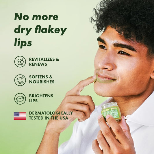 Handmade Heroes Matcha Latte Lip Scrub 1oz 100% Natural Vegan Skin Care Deep Conditioning Lip Scrub for Dry Lips with Jojoba Oil Avocado Oil - Natural Lightening Lip Exfoliator & Lip Plumper