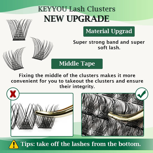 KEYYOU Lash Clusters 144pcs Individual D Curl 10mm Air Touch Cluster Lashes Super Lightweight Soft Wispy Comfortable Easy DIY at Home