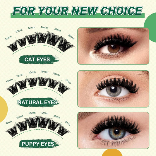 Lash Clusters 240pcs Eyelashes Cluster Individual Wispy Lashes Thin Band for D Curl Lash Extension Eyelashes for Beginners at Home,False Eyelashes Soft Eyelash Clusters(80D,D-Mix9-16mm)