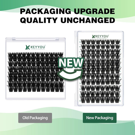 Lash Clusters 96pcs Individual Lashes Y02 D Curl 10-18MIX Cluster Lashes KEYYOU Volume Wispy Lash Extension Soft&Comfortable Easy DIY at Home(Y02,D-10-18MIX)