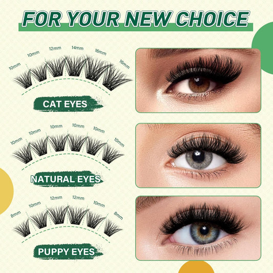 KEYYOU Lash Extension Kit DIY 300Pcs Lash Clusters Eyelash Extension Kit Lash Clusters Kit with Lash Glue Remover Applicator Easy to Use for Beginners(Kit,30D40D50D-D,8-16MIX)
