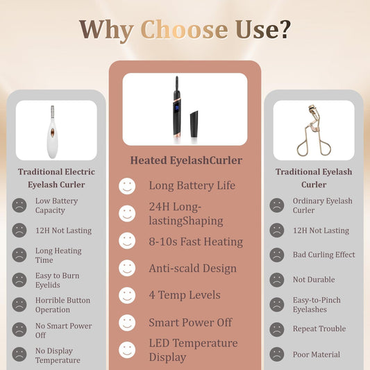 Heated Eyelash Curlers - Rechargeable Electric Eyelash Curler with 4 Heat Settings,Long-Lasting Curling Tool Includes Eyelash Brush,LED Display,Best for Women's Makeup (Black)