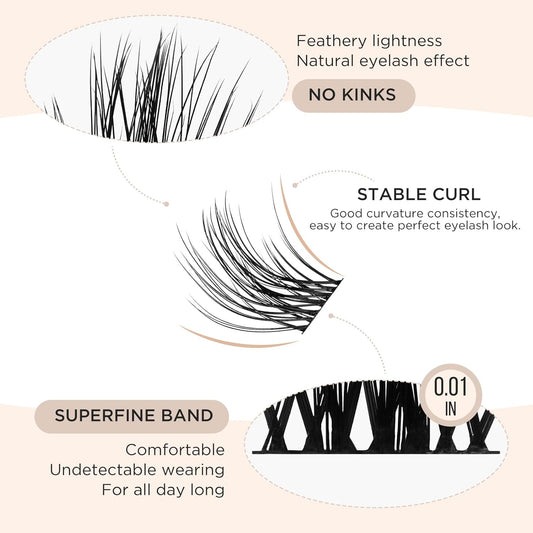 PopUp Lash-Extension-Clusters D Curl Lash Clusters Natural Look Cluster Lashes Extensions Band & Soft Lashes Reusable 9-16mm MIX (30D+40D)