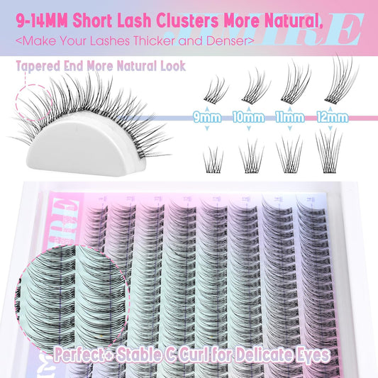 110Pcs Clear Band Lash Clusters 10-14mm Natural Look Cluster Eyelashes C Curl Resuable Invisible Band Individual Cluster Lashes(122)