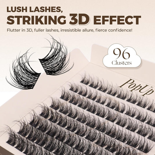 PopUp Cluster Lashes Wispy Cluster Eyelash Extensions 3D DIY Lash Clusters 10-16mm Multilayered Eyelash Clusters, Reusable Fluffy Individual Lashes Cluster(BDD02)