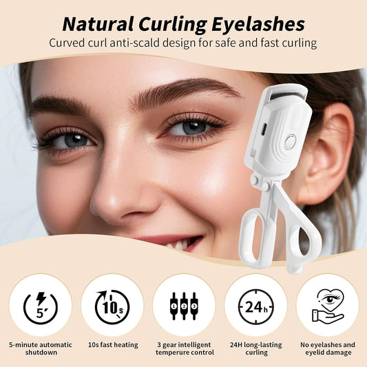 Heated Eyelash Curler, Fast Heat up Within 5s, 24 Hours Long Lasting, Rechargeable Electric Eyelash Curler, Temperature Control, Safe Anti-Burn Eyelash Curlers, Quick Natural Curling Eye Lashes