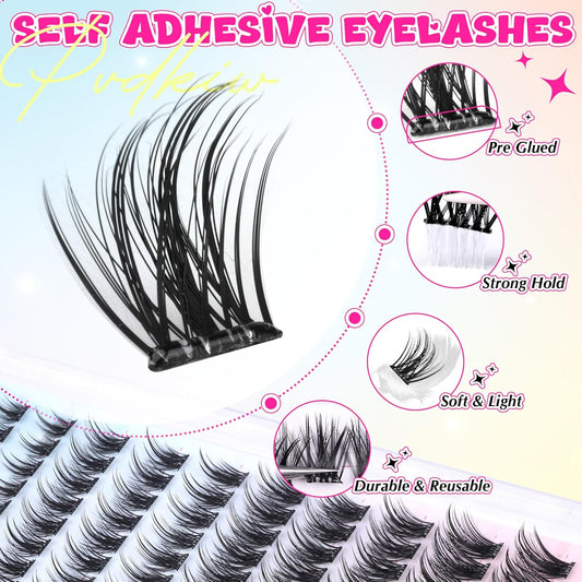 Self Adhesive Eyelashes Wispy Self Adhesive Lash Clusters Natural Lashes Clusters Pre Glued Eyelash Clusters C Curl Cluster Eyelash Extensions Press on Lashes No Glue Needed Reusable 10-16mm