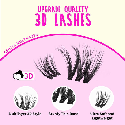GAQQI Lash Clusters Kit, DIY Lash Extensions Kit 10-14mm Cluster Lashes, Wispy Eyelash Clusters with Lash Bond and Seal+Lash Tweezer+Remover+110pcs Thin Band Individual Lashes (3D-GQ08-KIT)