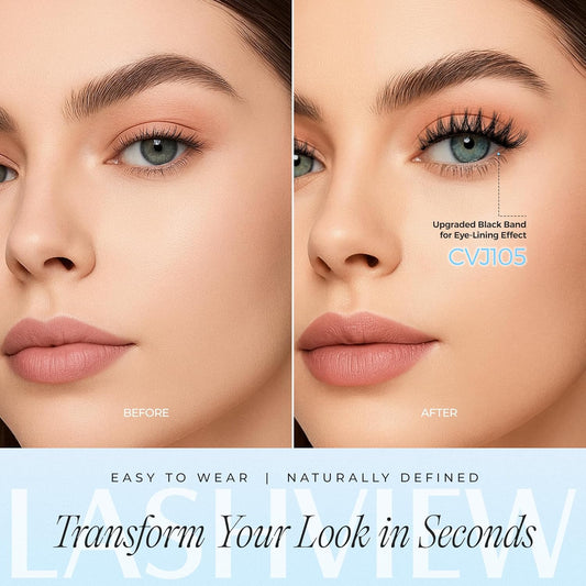 LASHVIEW Self Adhesive Eyelashes 5 Pairs Cat Eye Wispy Self-adhesive False Lashes Reusable Natural Look Press On Lashes No Glue Need Eyelashes with Replacement Adhesive Strips (CV105)