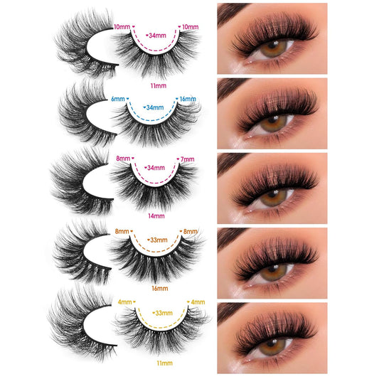 JIMIRE False Eyelashes Natural Fluffy Wispy Faux Mink Lashes 5D 14mm-18mm 5 Styles Mixed Lashes for Small Eyes Natural Look Fake Eyelashes 20 Pairs Multipack