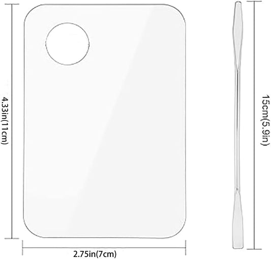 2pcs Acrylic Makeup Palette, Cosmetic Makeup Mixing Tray with 2pcs Spatula Tool, Foundation Makeup Palette for Nail Art Eye Shadow Pigment Blending (Rectangle)