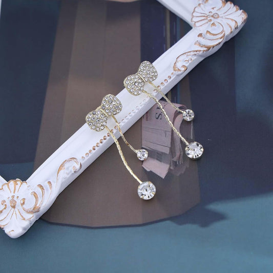 Vintage Crystal Bow Chain Drop Earrings Long Rhinestone Chain Earrings Cz Chain Tassel Earrings Gold Bowknot Stud Earrings Jewelry for Women