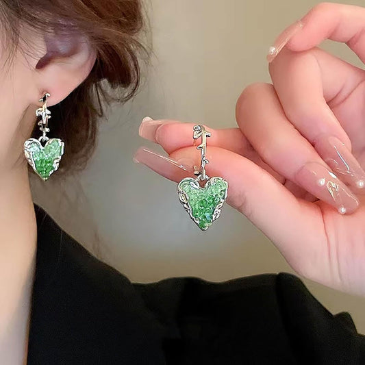 Vintage Rhinestone Heart Dangle Earrings Long Crystal Heart Earrings Silver Hollow Heart Drop Earrings Cz Love Heart Stud Earrings Jewelry for Women