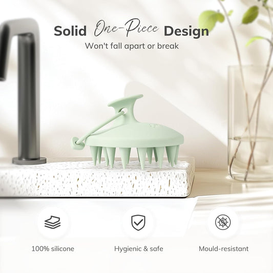 Sndyi Scalp Massager Shampoo Brush, Scalp Scrubber with Soft Silicone Bristles, Scalp Exfoliator for Dandruff Removal, Scalp Massager for Hair Growth, Wet Dry Hair Brush for Scalp Care, Green