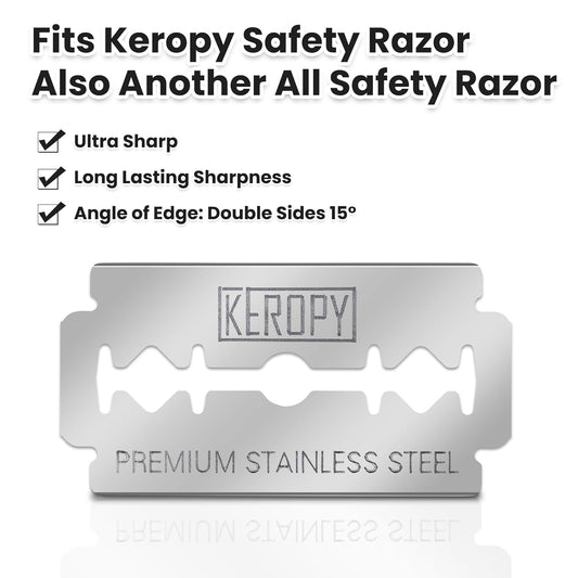 Double Edge Safety Razor Blades-50 Count Premium Razor Blades, Surgical Stainless Steel with Chromium Coating&3X Sharper Edges, Zero Irritation, Fits Most of Safety Razors, Sensitive Skin Safe