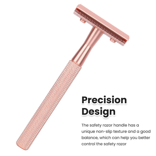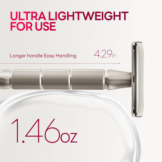 Double-Edge Safety Razor, Single-Blade Razors with 5 Stainless Steel Razor Blades for Men and Women, Reusable Metal Razor – Champagne Matt