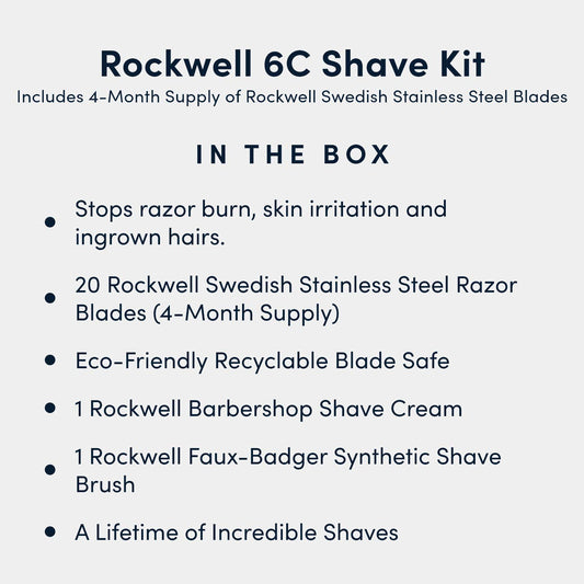 Rockwell 6C Shave Kit (White Chrome) | Includes Safety Razor with 6 Adjustable Settings, Shaving Cream, Synthetic Shave Brush, & 4 Month Supply Swedish Stainless Steel Razor (20 Blades), 4 Piece Set