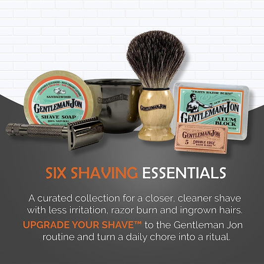 Safety Razor Shaving Kit | Vintage Wet Shave Grooming Set for Men - Includes: Safety Razor, Hair Shaving Brush, Alum Block, Shave Soap, Bowl & Double Edge Razor Blades