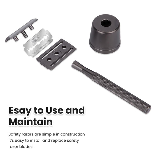 Double Edge Razor With Stand and 10 Premium Stainless Steel Blade Safety Razors For Men Shaving Razor, Matte Black Double Edge Safety Razor, Gun Black