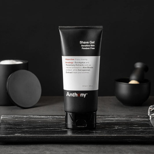 Anthony Shave Gel for Sensitive Skin – Non-Foaming, Soothing Shaving Cream for Men and Women. With Aloe Vera Beads, Eucalyptus, Rosemary and Carrageenan Extract - 6 Fl Oz