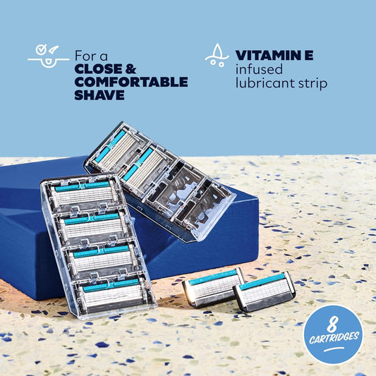 Dollar Shave Club | 4 Blade Razor Refills (8 Pack) | Swift Rinse Blades for Longer and Thicker Hair