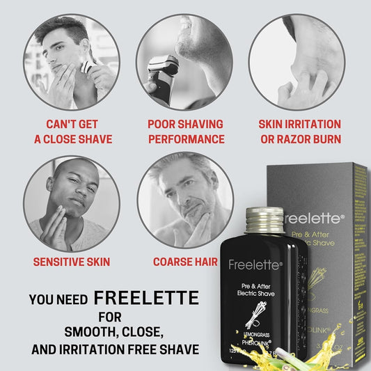 Pre Electric Shave After Shave Lotion Cream - Best For Close Shave - Smooth Irritation-Free Shaving - Shooting and Moisturising Formula Balm. Freelette (7.4 Fl Oz (Pack of 1), PALMETTO AND BISABOLOL)