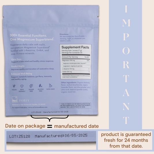 mellö Magnesium Supplement Superblend Powder - Magnesium Glycinate with L-Theanine, GABA, and 70 Trace Minerals - Supports Sleep, Relaxation, Balanced Energy - Lavenderberry Flavor, 30 Servings