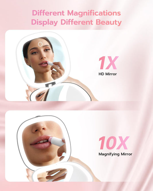 deweisn Compact Mirror, Lighted Travel Makeup Mirror with 1X/10X Magnifying Double Sided Dimmable Portable Pocket Mirror for Handbag and Pocket, USB Charging(Pink)