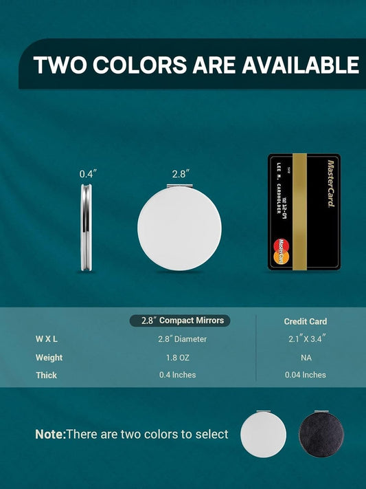 Compact Mirror,Set of 2 Round Double-Sided Makeup Small Mirror for Purse with 1X/3X Magnification PU Leather (White, 2.8")