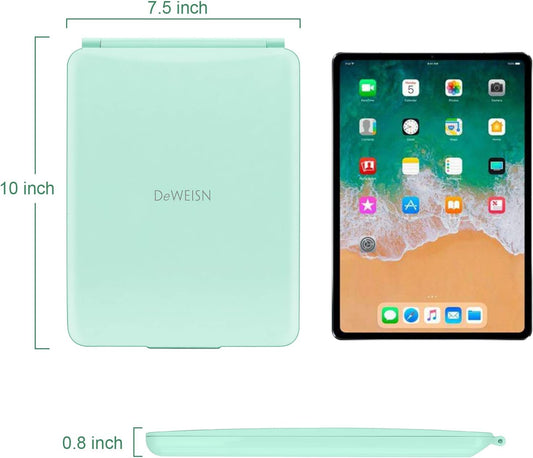 deweisn Folding Travel Mirror Lighted Makeup Mirror with 72 LEDs 3 Colors Light Modes, USB Rechargable, Portable, Ultra Thin, CompactVanity Mirror with Touch Screen Dimming for Cosmetic (Green)